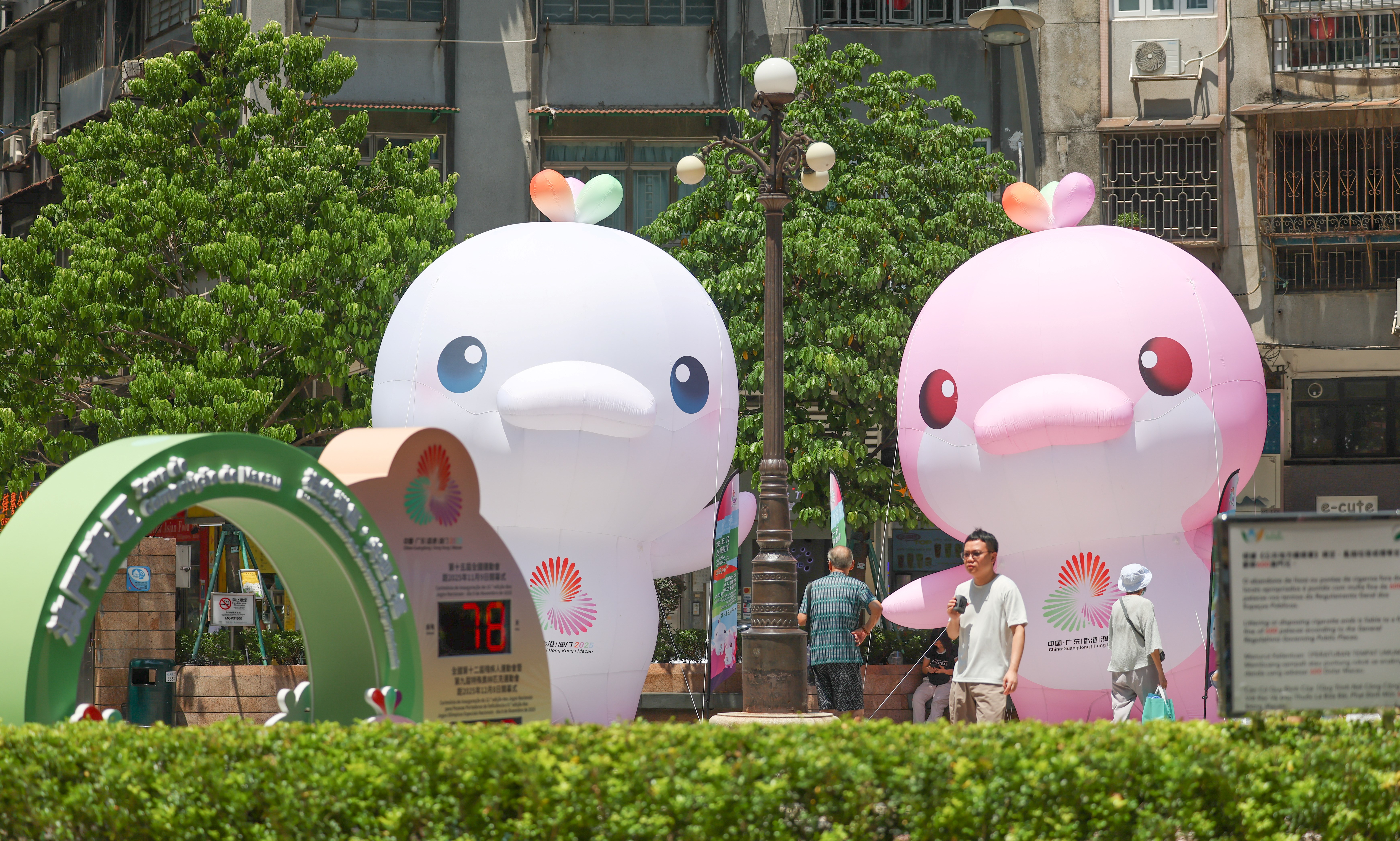 是次活动走访了澳门不同社区点,包括:望德楼地下平台、黑沙环公园、筷子基北湾休憩区、澳门科学馆、三盏灯圆形地和氹仔运动场圆形地,活动设有运动主题游戏摊位,让公众体验不同运动项目,市民踊跃参与、充满活力。活动现场亦设有全运会拍照打卡道具,让市民留下与全运精彩同行的美好回忆,超萌吉祥物「喜洋洋」和「乐融融」亦登场与市民可爱互动,一对五米高吉祥物充气造型现身闹市,吸引粉丝和市民争相合影,现场气氛喜气洋洋、乐也融融。