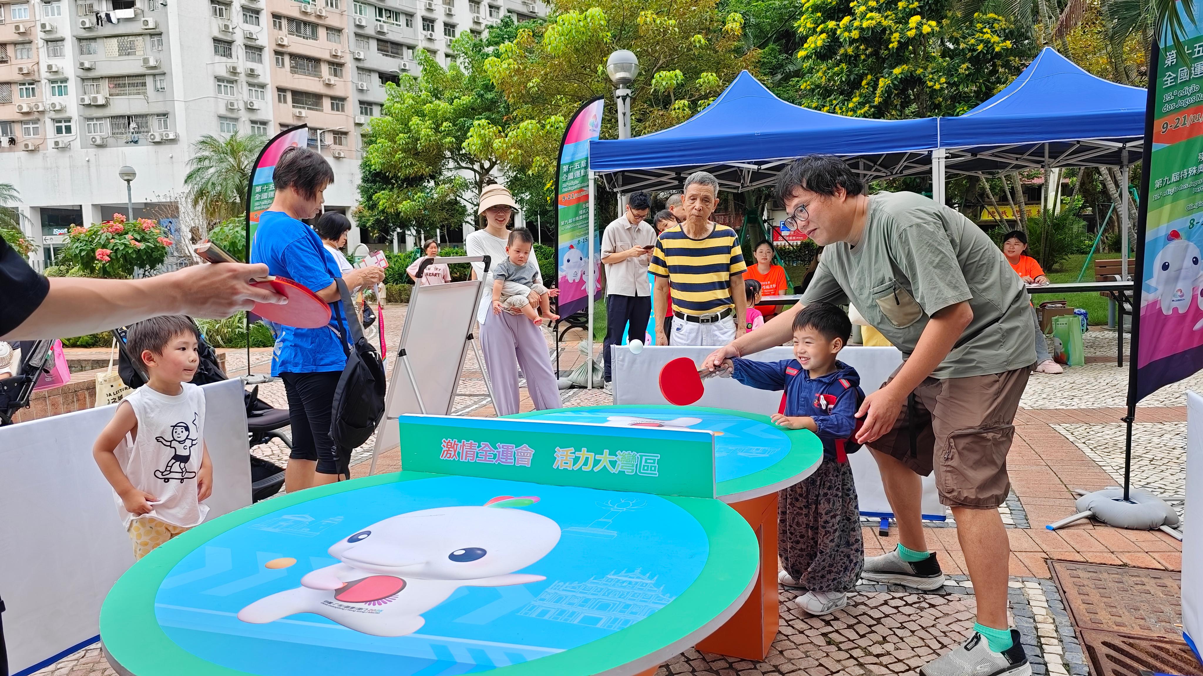 由第十五届全国运动会及全国第十二届残疾人运动会暨第九届特殊奥林匹克运动会澳门赛区筹备办公室(下称“筹备办”)举办的“全运零距离 ‒ 全运走进社区”活动一连两日举行,向市民和旅客推广十五运会和残特奥会澳门赛区的资讯,加深公众对全国运动会的关注和了解,提升全澳市民和旅客的参与度和支持度,营造全民全运的城市氛围。