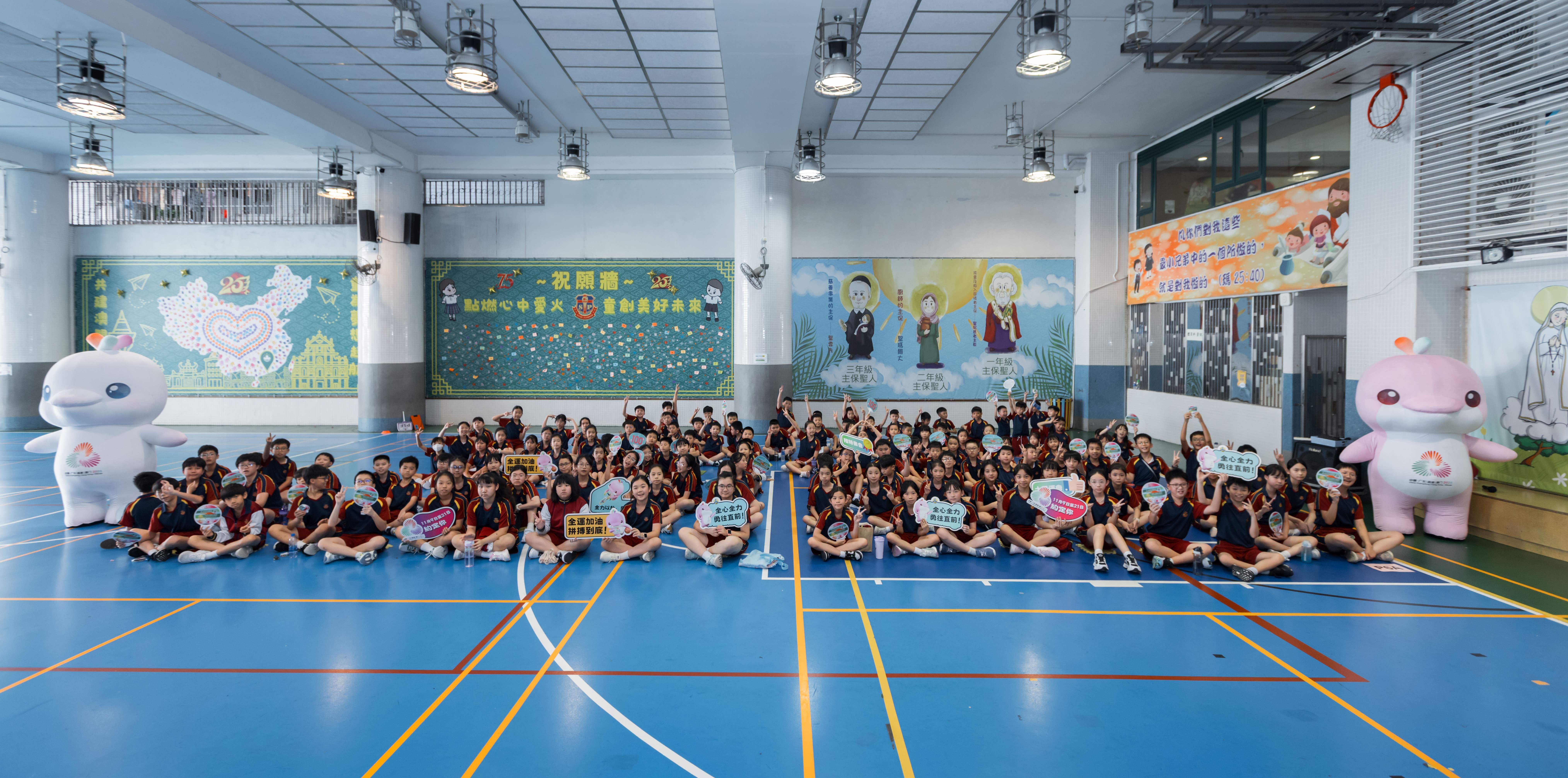 是次活动一共到访15所学校,包括:培道中学小学部分教处、镜平学校、澳门坊众学校(小幼部)、鲍思高粤华小学、培道中学氹仔分校(小学)、圣若瑟教区中学第二校、广大中学分校、圣若瑟教区中学第一校、教业中学、陈瑞祺永援中学、利玛窦中学、圣家学校、圣保禄学校、培正中学及濠江中学附属英才学校,吉祥物「喜洋洋」与「乐融融」惊喜亮相,与师生展开亲切互动,校园洋溢浓厚全运氛围。