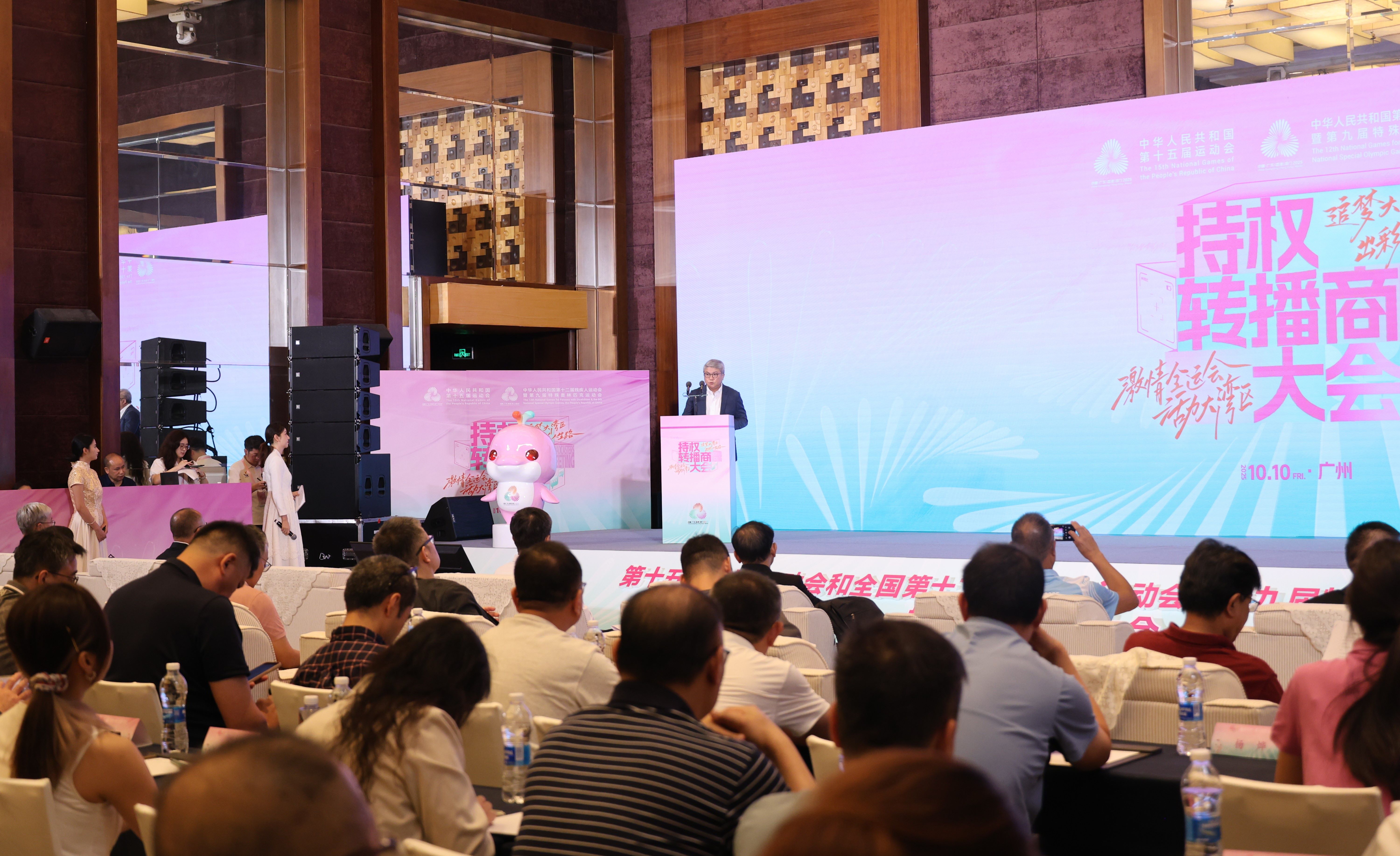 为了体现第十五届全国运动会和全国第十二届残疾人运动会暨第九届特殊奥林匹克运动会(下称“十五运会和残特奥会”)的重要价值,推进十五运会和残特奥会转播工作,促进赛事组织方与各持权转播商的深度合作,今(10)日在广州举行十五运会和残特奥会持权转播商大会,广东省执委会新闻广电宣传部部长崔朝阳,澳门赛区筹备办公室主任潘永权、香港赛区统筹办公室助理主任陆智刚、中国国际电视总公司副总经理、国际传媒港(上海)文化发展有限公司董事长兼总经理、十五运会和残特奥会主转播执行机构负责人赵建军、中央广播电视总台体育青少节目中心体育频道编辑部主任张斌、广东赛区及深圳赛区代表以及主转播机构代表出席,向持权转播商发布赛区场馆情况及服务信息,并解答持权转播商疑问。