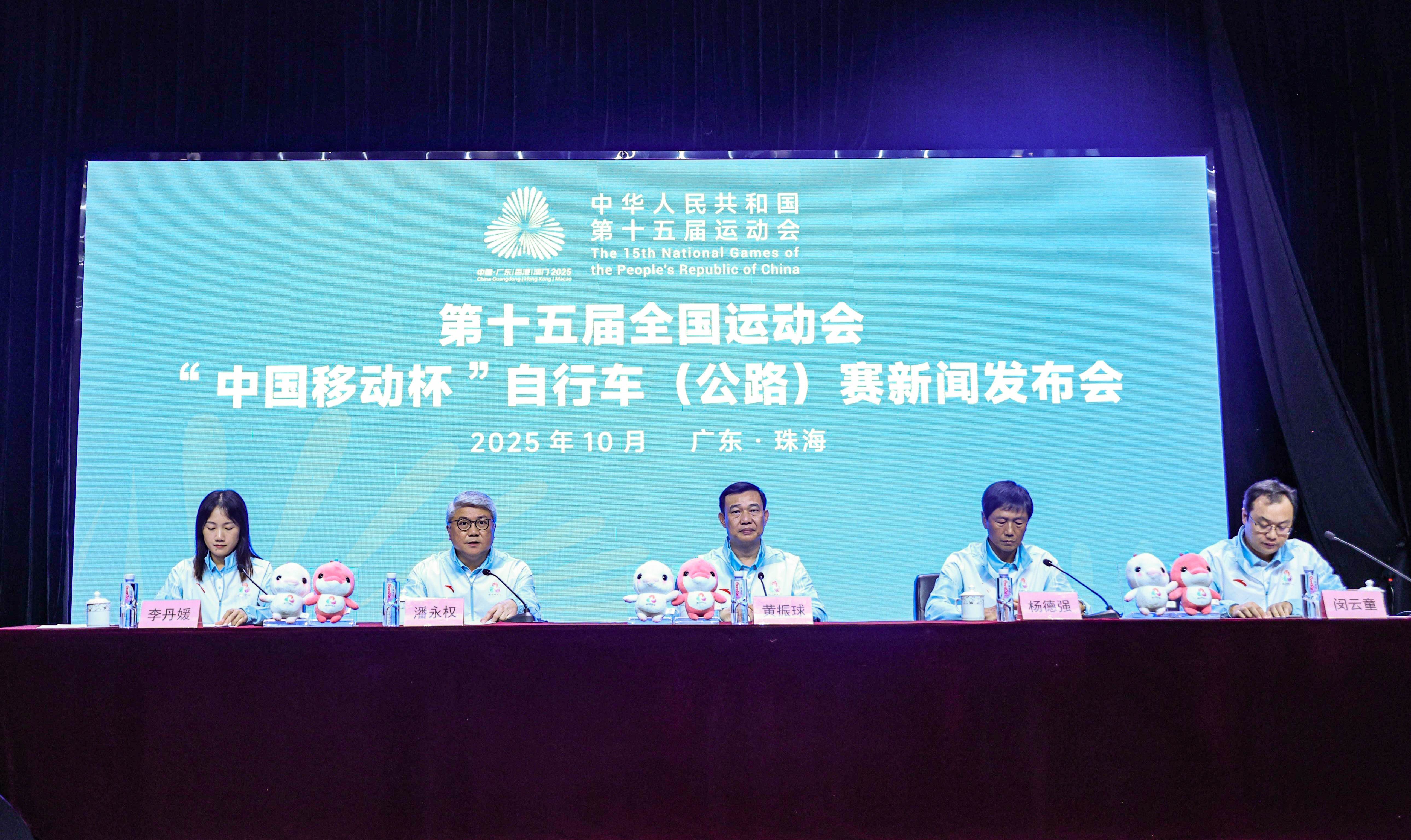 第十五届全国运动会自行车(公路)赛今(13)日下午三时在珠海举行新闻发布会,珠海赛区执委会副主任、珠海市副市长黄振球,香港赛区统筹办公室主任杨德强,澳门赛区筹备办公室主任潘永权,珠海赛区执委会办公室常务副主任、珠海市文化广电旅游体育局局长闵云童等三地赛区代表出席。