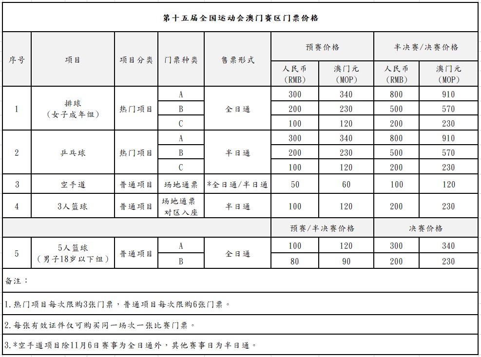 排球(女子成年)比赛:11月7日-19日在澳门威尼斯人综艺馆、东亚运动会体育馆举办;