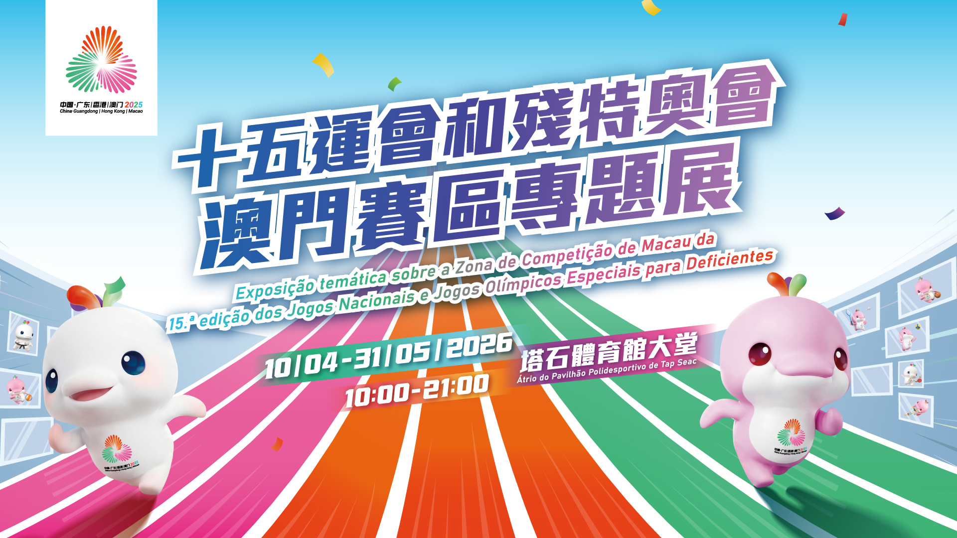 “十五運會和殘特奧會澳門賽區專題展”全面展示十五運會和殘特奧會澳門賽區的籌備與盛況,現場設有展板介紹運動會會徽、口號及吉祥物的設計意念與精神內涵,並通過一系列精選相片展示籌備倒數階段、志願者服務、碳中和成果、火炬傳遞的精彩瞬間,以體育連結社區、促進社會團結共融的宣傳活動,以及運動員積極拼搏的風采等。現場更展出奬牌、門票、制服、火炬、火種燈、火種盆、特許商品等實物,以及延伸活動包括徵文、繪畫、攝影比賽的得奬作品,讓公眾近距離感受運動會的獨特魅力與歷史意義。